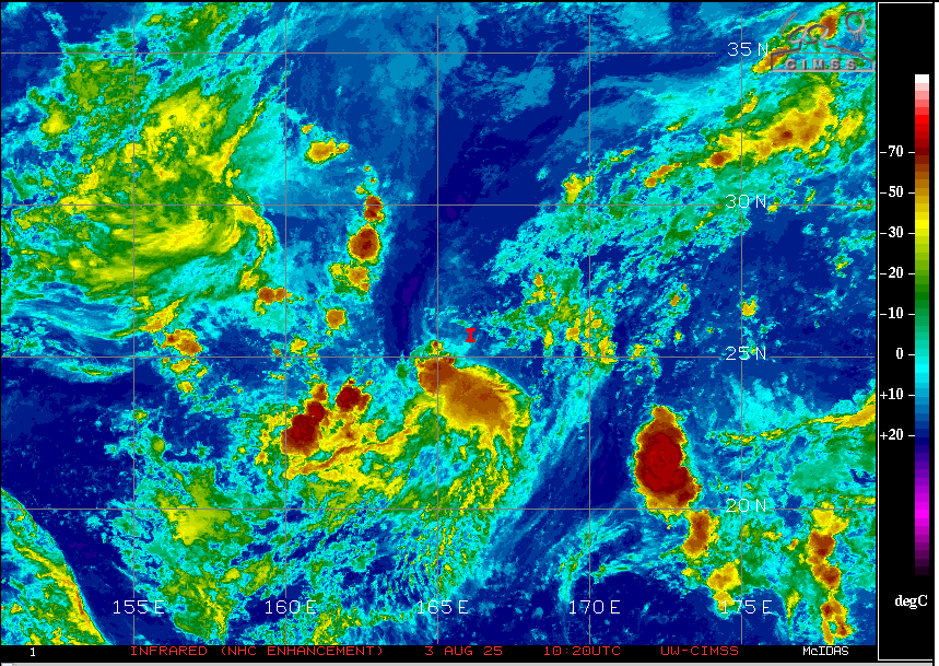 한편 JTWC는 북서태평양 태풍 구역의 동쪽 끝자락에 가까운 25.9°N 166.1°E(미국령 웨이크 섬 북쪽 약 730km 부근 해상)에 자리한 95호 열대요란(한국기상청 25호 열대저압부)에 대해서 열대저기압 형성 경보(TCFA)를 발령하였습니다.
