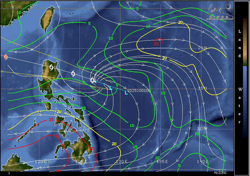 현재 태풍 마트모로의 발달을 앞두고 있는 이 열대저기압은 필리핀 마닐라 국제공항에서 동쪽으로 약 940km가량 떨어진 14.6°N 129.7°E 인근 지점에서 필리핀 루손 북쪽으로 서북서진하고 있으며, 중심기압은 1006hPa, 1분 평균 최대풍속은 시속 약 45~55km(25~30노트)로, 앞으로 24시간 이내에 공식 태풍으로 발달할 것으로 예상됩니다.
