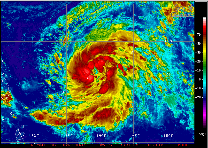 심지어 필리핀 기상당국(PAGASA)에서는 이 태풍이 자국 경보구역에 들어오기 전부터 내놓기 시작한 예보에서 11월 8일에서 9일 사이에 1분 평균 최대풍속이 시속 약 240km(130노트)를 넘어서는 슈퍼태풍(STY) 강도 이상의 발달까지 예상하고 있어 불과 며칠 전 25호 태풍 갈매기가 막대한 피해를 입힌 필리핀 중부 세부 일대에 이어 이번에는 필리핀 북부 루손 일대에 또 다른 태풍의 피해가 매우 강하게 발생할 가능성이 높습니다.