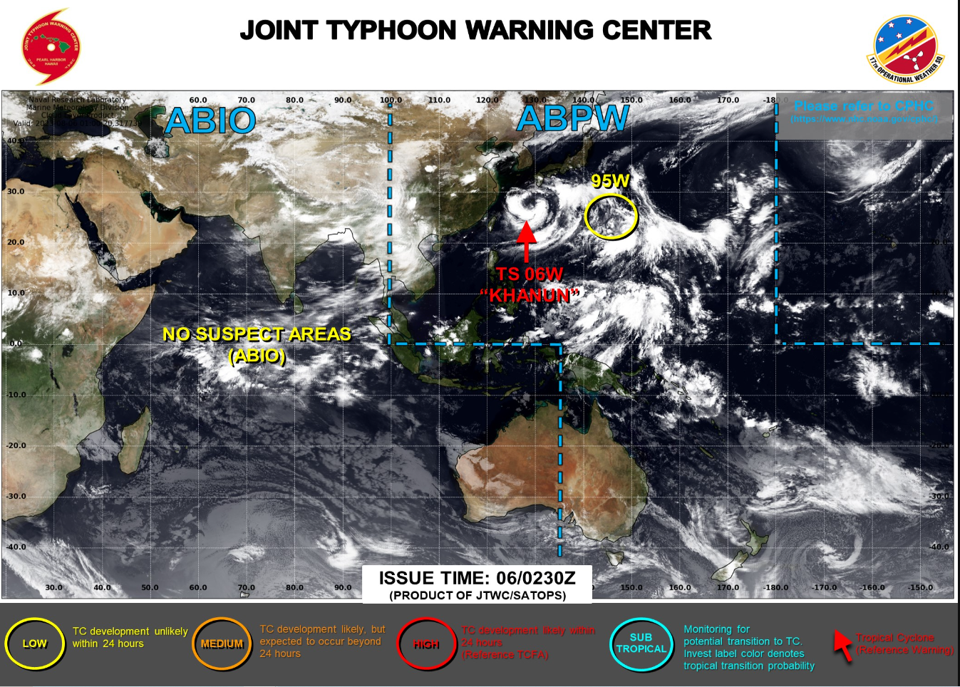 현재 도쿄 하네다 국제공항에서 남남동쪽으로 약 1,260km가량 떨어진 해상인 25.2°N 145.1°E 인근 지점에 자리한 95호 열대요란은 현재 중심기압 1002hPa, 중심최대풍속은 시속 약 28km(15노트)로 괌 인근의 94호 열대요란보다 훨씬 늦은 시점인 8월 5일 발생하였지만 상대적으로 낮은 윈드시어와 높은 해수면 온도(29~30℃)에 힘입어 더 빠른 속도로 발달할 가능성이 높습니다.